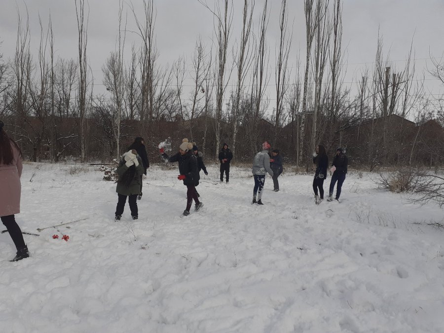 Գնացինք Ջրվեժի արգելոց, որտեղ ձյունաշատ վայր է, խաղացինք ձնագնդի, սահեցինք սահնակներով և նկարվեցինք։