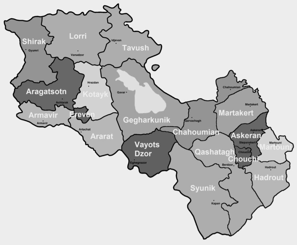 - Առանձնացնել մարզերի գլխավոր քաղաքները։