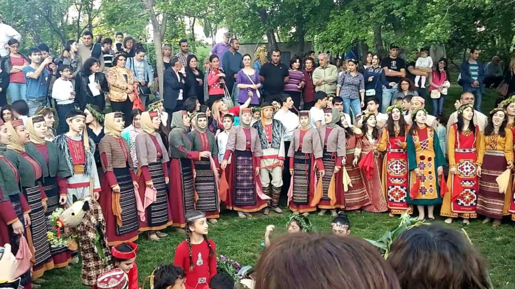 Exactly forty days after Easter, the Feast of the Ascension or, as it is called in many places, the Festival of Fortune or Milk Soup is celebrated. After Holy Resurrection or Easter, Christ walked on the earth for forty days and ascended to heaven on the fortieth day. Here is the Ascension Day in the Christian calendar, also called the Day of Fortune or Milk Soup in Armenia. Connected with Easter, Ascension is naturally a moving holiday, with different dates each year. However, it always falls on a Thursday and the festivities begin on Wednesday. On that Wednesday, women observed “Sunday of Tsaghkamayr”, avoiding certain works in honour of “Tsaghkamayr” so that she would keep their children free from “pox” and “measles” diseases. Tsaghkamayr, according to the tradition, is a virgin named Varvare, who was persecuted by her idolatrous father because of her conversion to Christianity, and she, fleeing from Western Armenia, came to Mount Ara near Ashtarak and hid in one of its caves. The father, following the girl’s footsteps, reached her, and the shepherds who were grazing sheep near the cave showed the place where the girl was hiding. Desperate Varvare, before being martyred, asked God that children with pox and measles be healed in her name. God granted her request, and the children of mothers praying to Varvare are freed from these diseases. At the same time, Varvare cursed the shepherds who betrayed him, and they were petrified with their sheep. To this day, the inhabitants of Ashtarak show those stones to people.