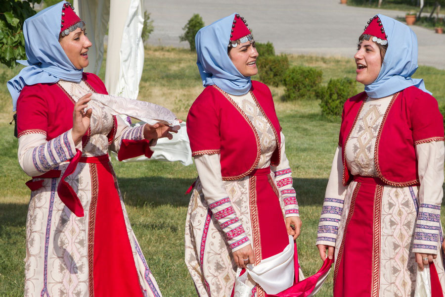 The wedding day itself starts early in the morning when the groom and his relatives go to the bride’s home with flowers, decorated fruit baskets, sweets, wine, Armenian brandy, shoes and perfume. Upon arrival, they are treated to a delicious feast.