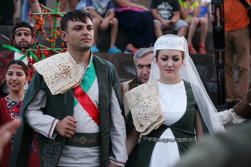 According to one of the oldest wedding traditions in Armenia, the godparents of the groom must pay a ransom for the bride before he is allowed to see her. In another fun tradition still observed at weddings today, one of the bride’s shoes is stolen as she is getting dressed. After long negotiations and joyful bargaining, the shoe is returned to the young lady, often with money inside as a symbol of wealth.